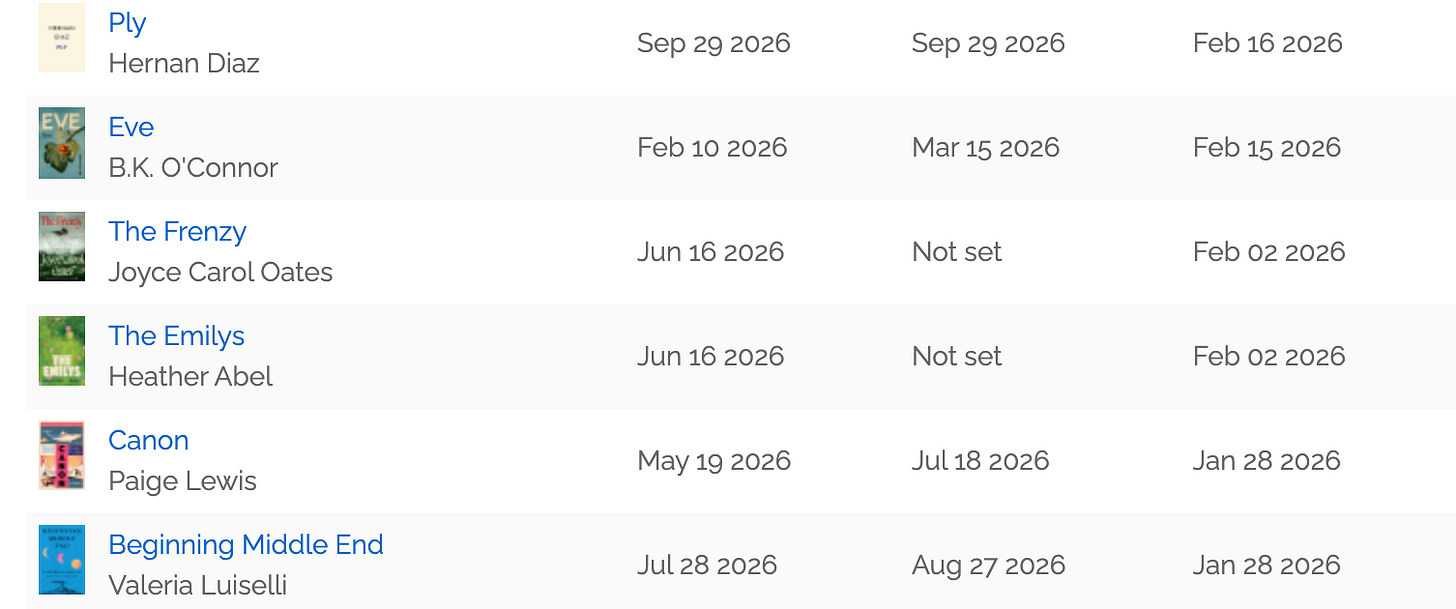 Currently I’m reading books for the 2026 Paperback Summer Reading Guide. This is the biggest project I put out each year and the way I typically find books for it is quite chaotic. I read and read and read and as I read, patterns emerge. There are always return categories from previous PSRG, such as Feels Like Summer or No Plot, Just Vibes, but I’m also following the books. This method is usually my idea of fun, but it’s also extremely difficult. Because the categories in the PSRG aren’t the kind of things you can tell based on the jacket copy. I might think I’m getting myself into a Warm and Weird sort of book only for the plot to take a decidedly dastardly turn.